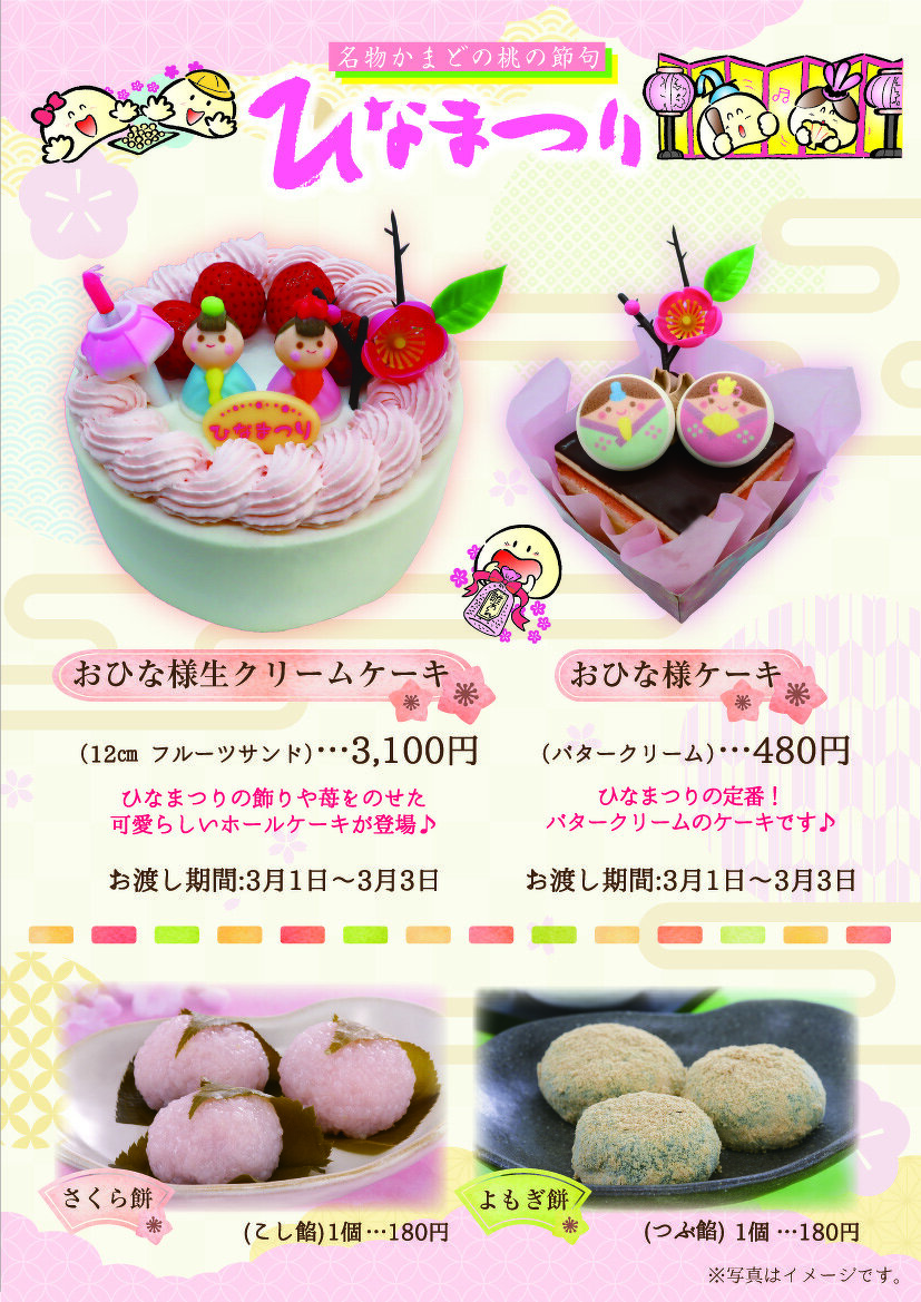 ひなまつり商品販売のお知らせです。